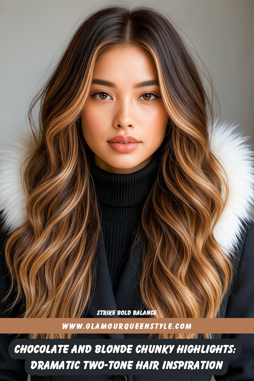 14. Chocolate and Blonde Chunky Highlights: Dramatic Two-Tone Hair Inspiration