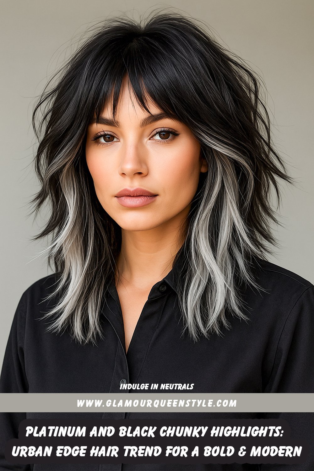 17. Platinum and Black Chunky Highlights: Urban Edge Hair Trend for a Bold, Modern Look
