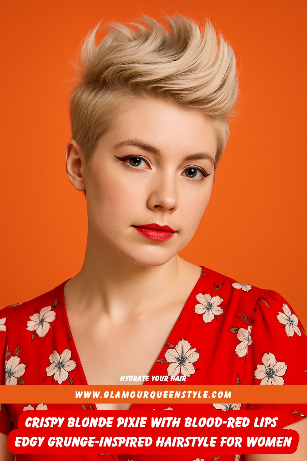12. Crispy Blonde Pixie with Blood-Red Lips – Edgy Grunge-Inspired Hairstyle for Women