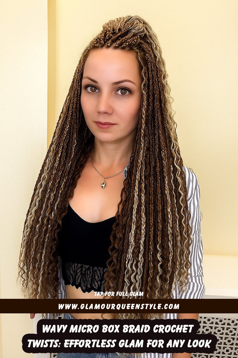 Discover the confidence-boosting power of wavy micro box braid crochet twists—a must-have hairstyle that instantly elevates your beauty routine. With ultra-thin, perfectly defined braids that flow into soft waves, you’ll enjoy a lightweight yet voluminous look ideal for any occasion. These intricate braids frame your face beautifully and pair flawlessly with bold brows, glowing skin, and statement lips to highlight your natural features. For an outfit match made in heaven, style these elegant twists with chic off-the-shoulder tops or vibrant printed dresses—accessorized with gold hoops or layered necklaces—to create a polished, head-turning ensemble.