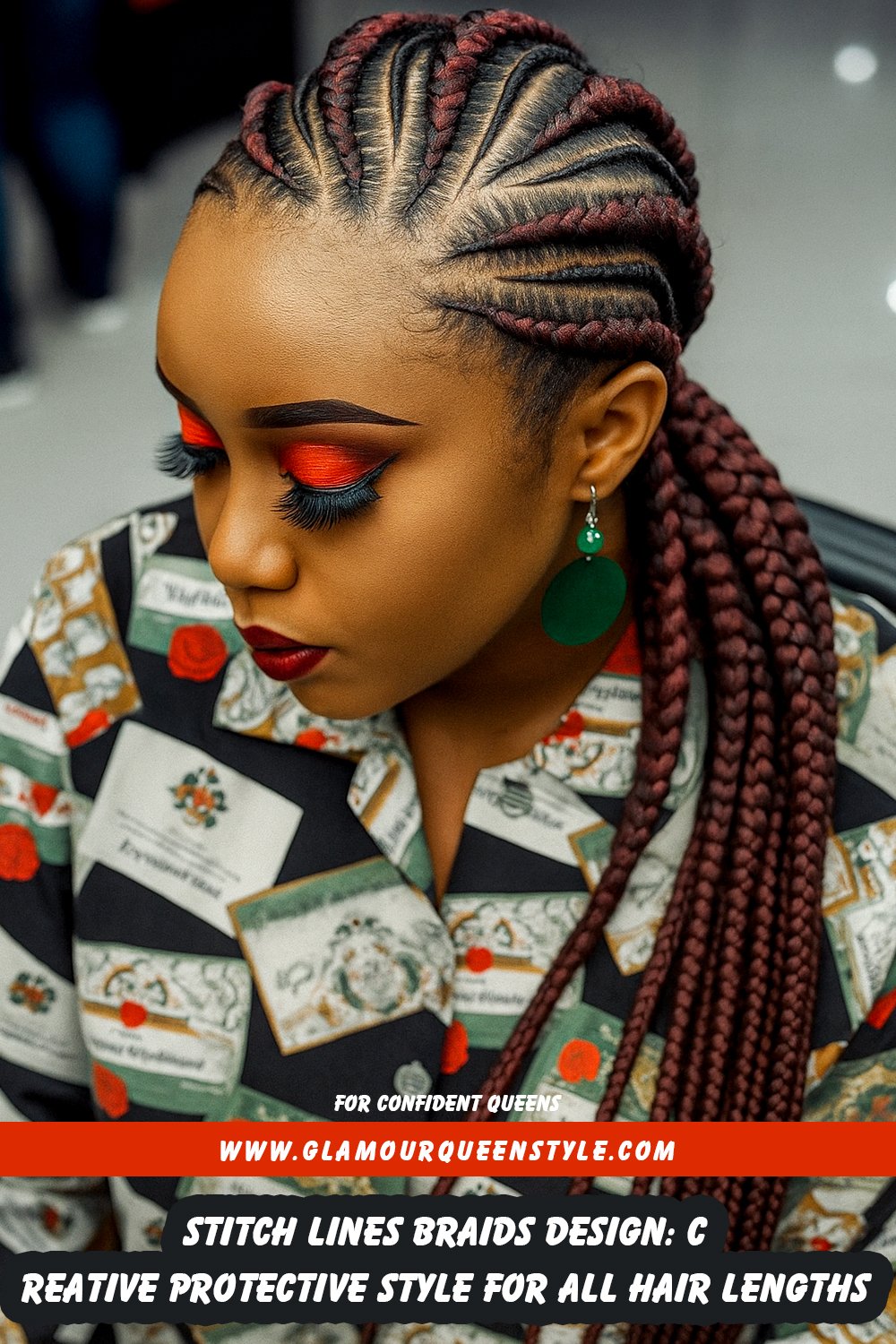 21. Stitch Lines Braids Design: Creative Protective Style for All Hair Lengths