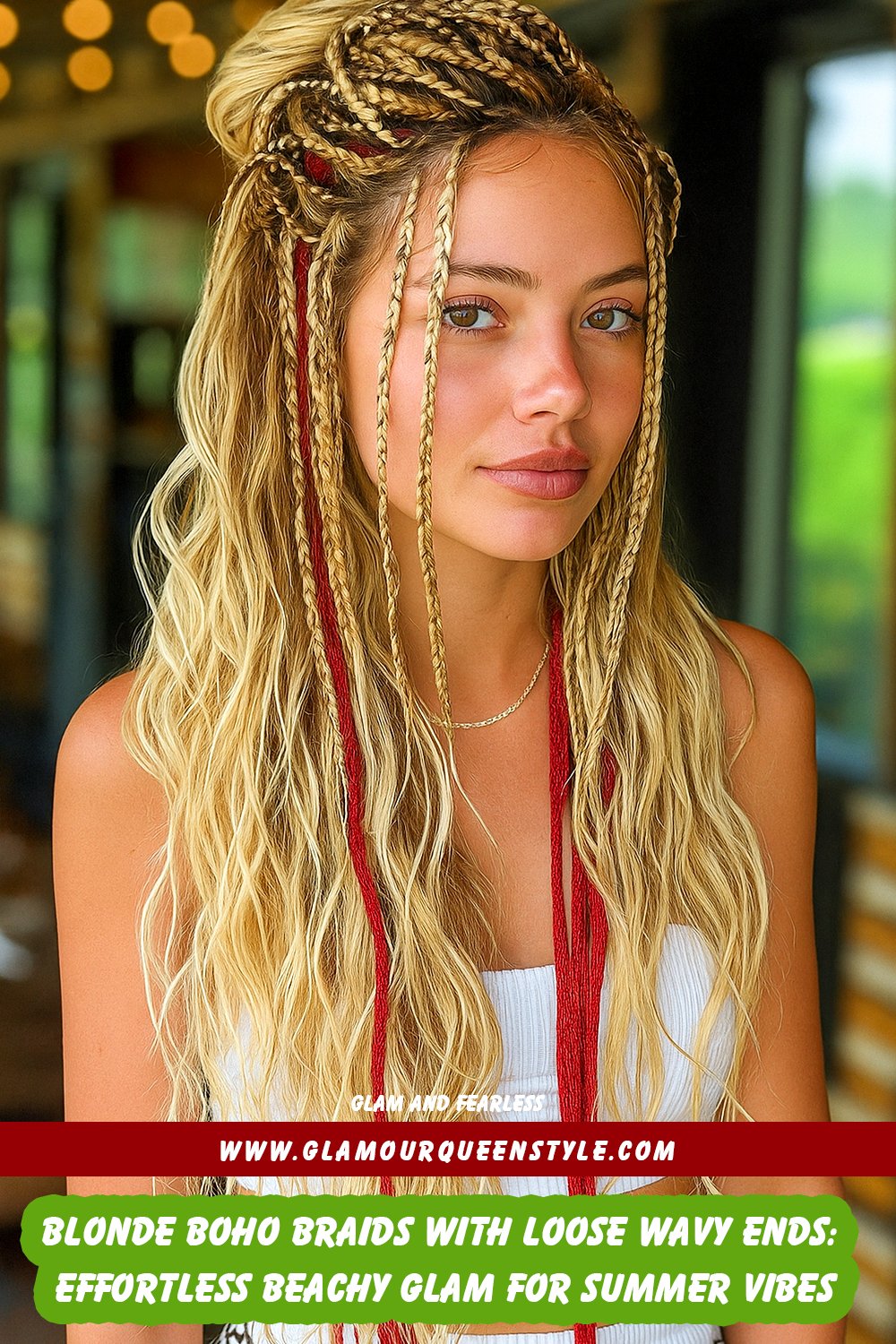 27. Blonde Boho Braids with Loose Wavy Ends: Effortless Beachy Glam for Summer Vibes