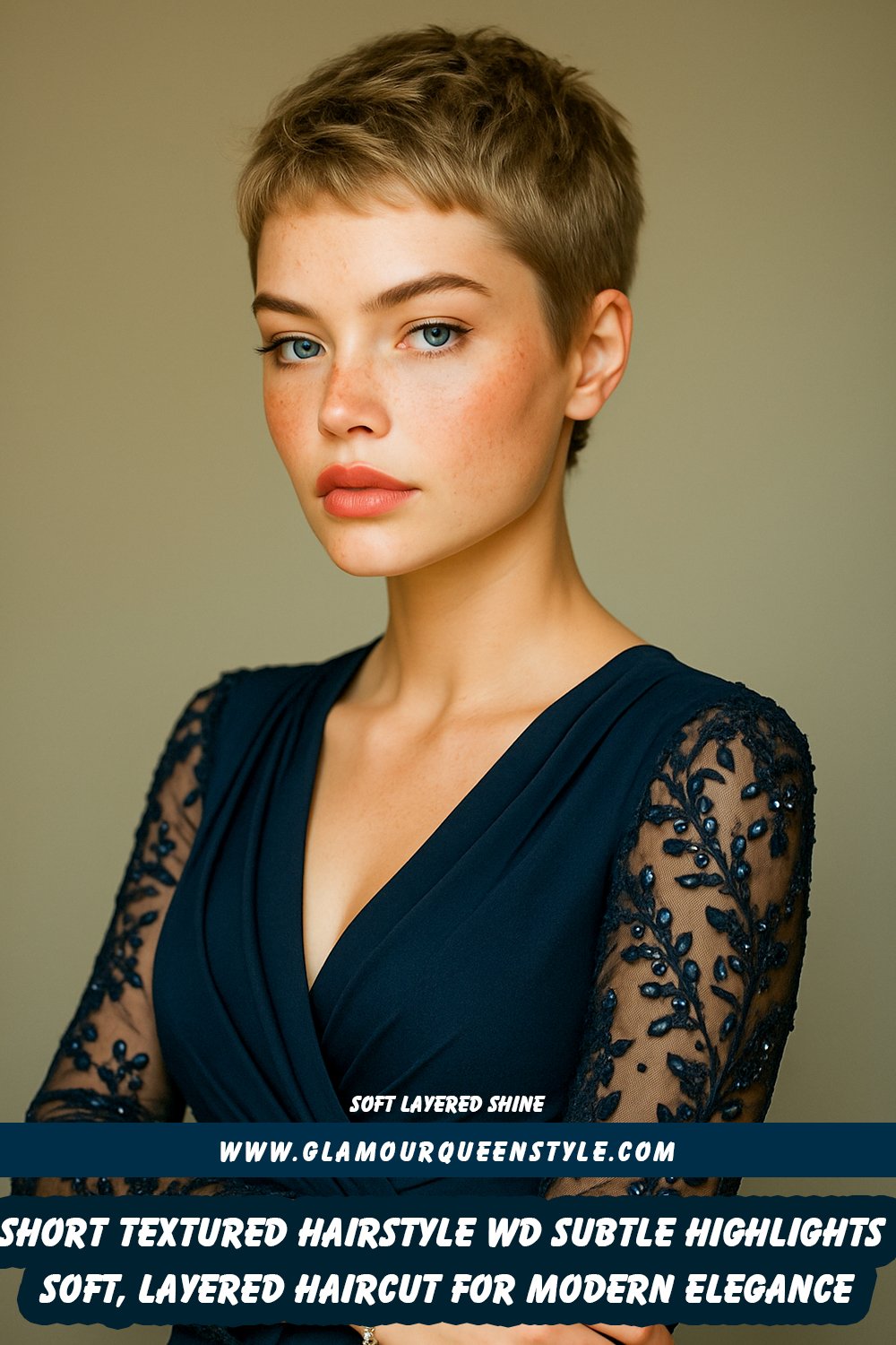 25. Short Textured Hairstyle with Subtle Highlights | Soft, Layered Haircut for Modern Elegance