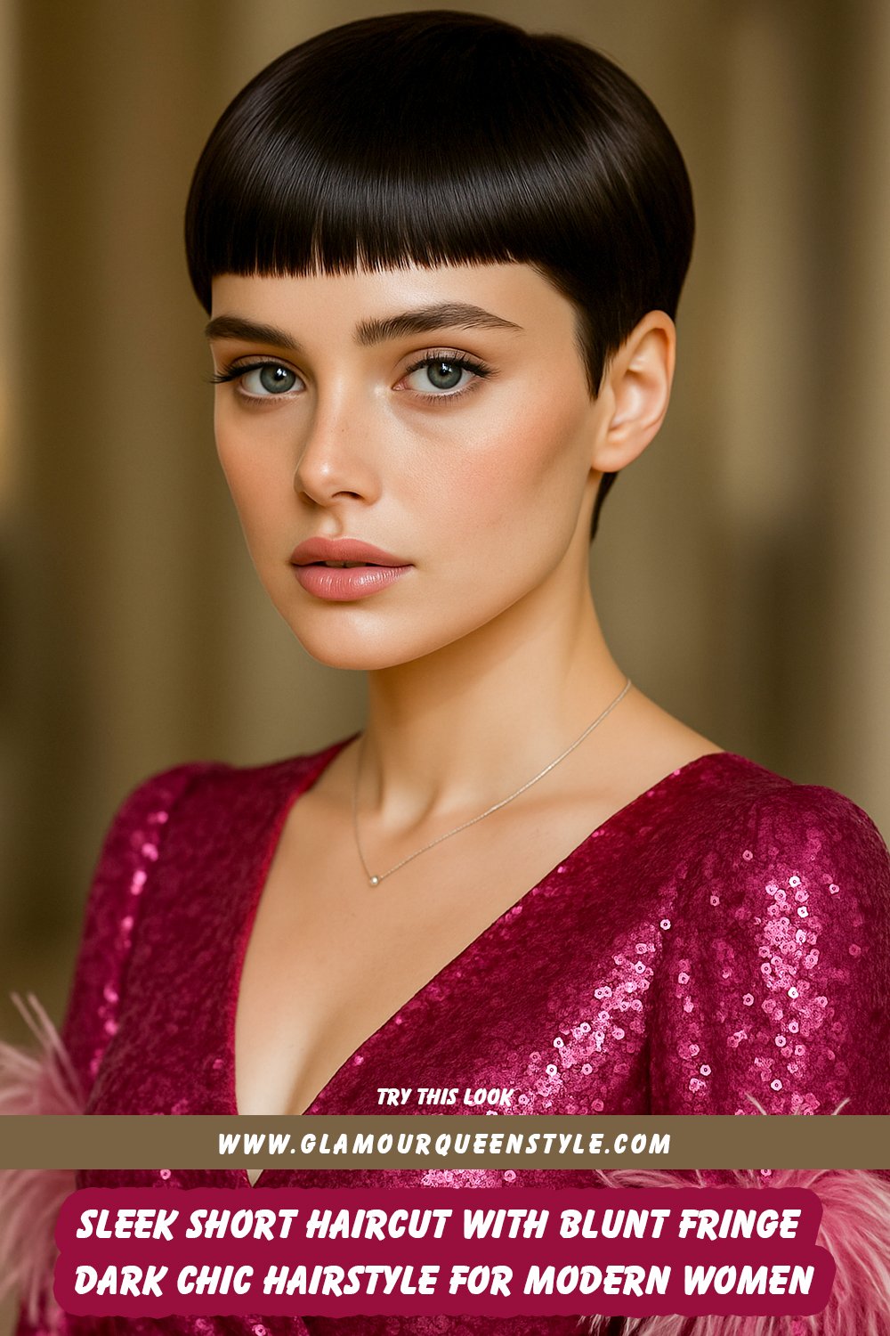 17. Sleek Short Haircut with Blunt Fringe | Dark Chic Hairstyle for Modern Women