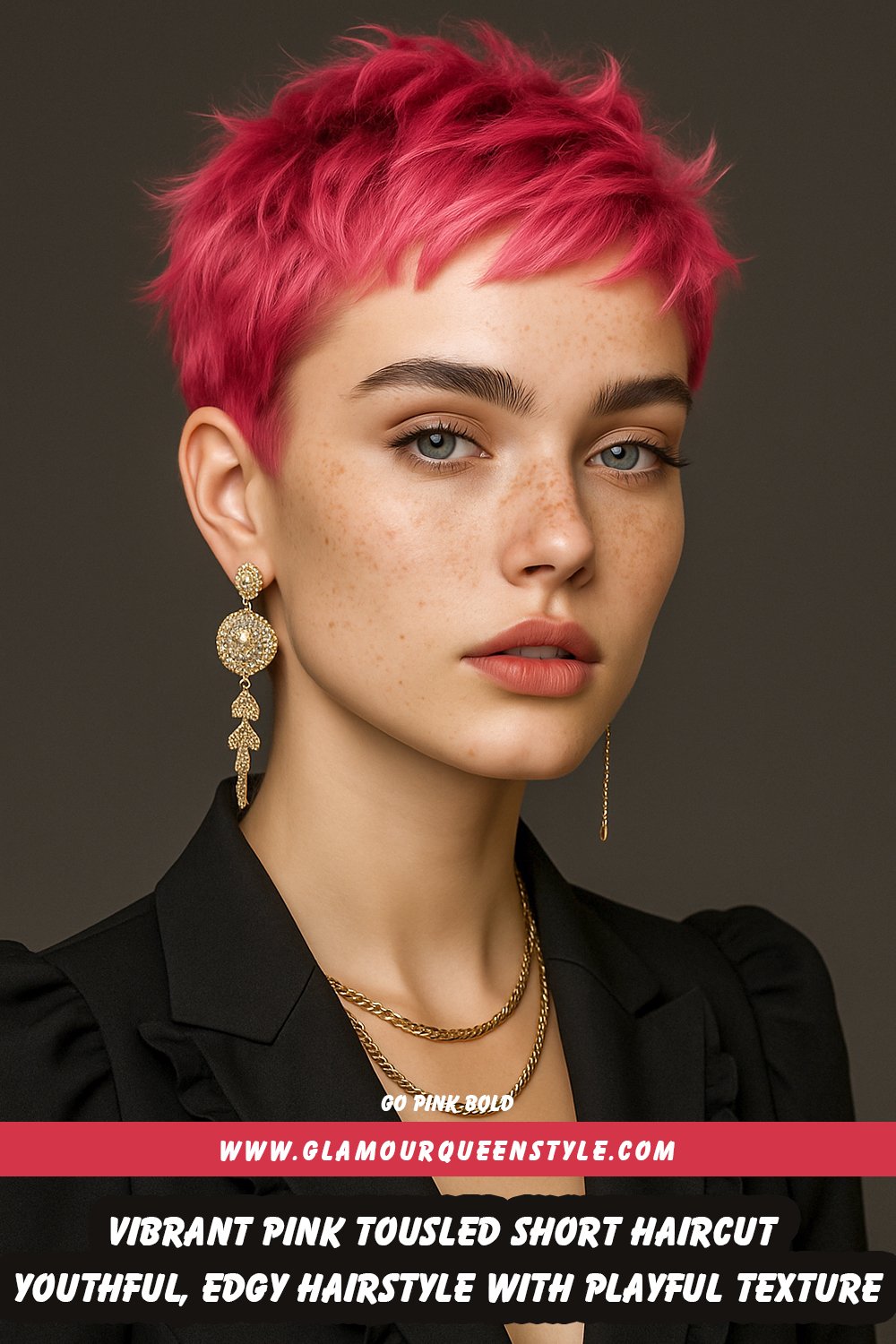 20. Vibrant Pink Tousled Short Haircut | Youthful, Edgy Hairstyle with Playful Texture