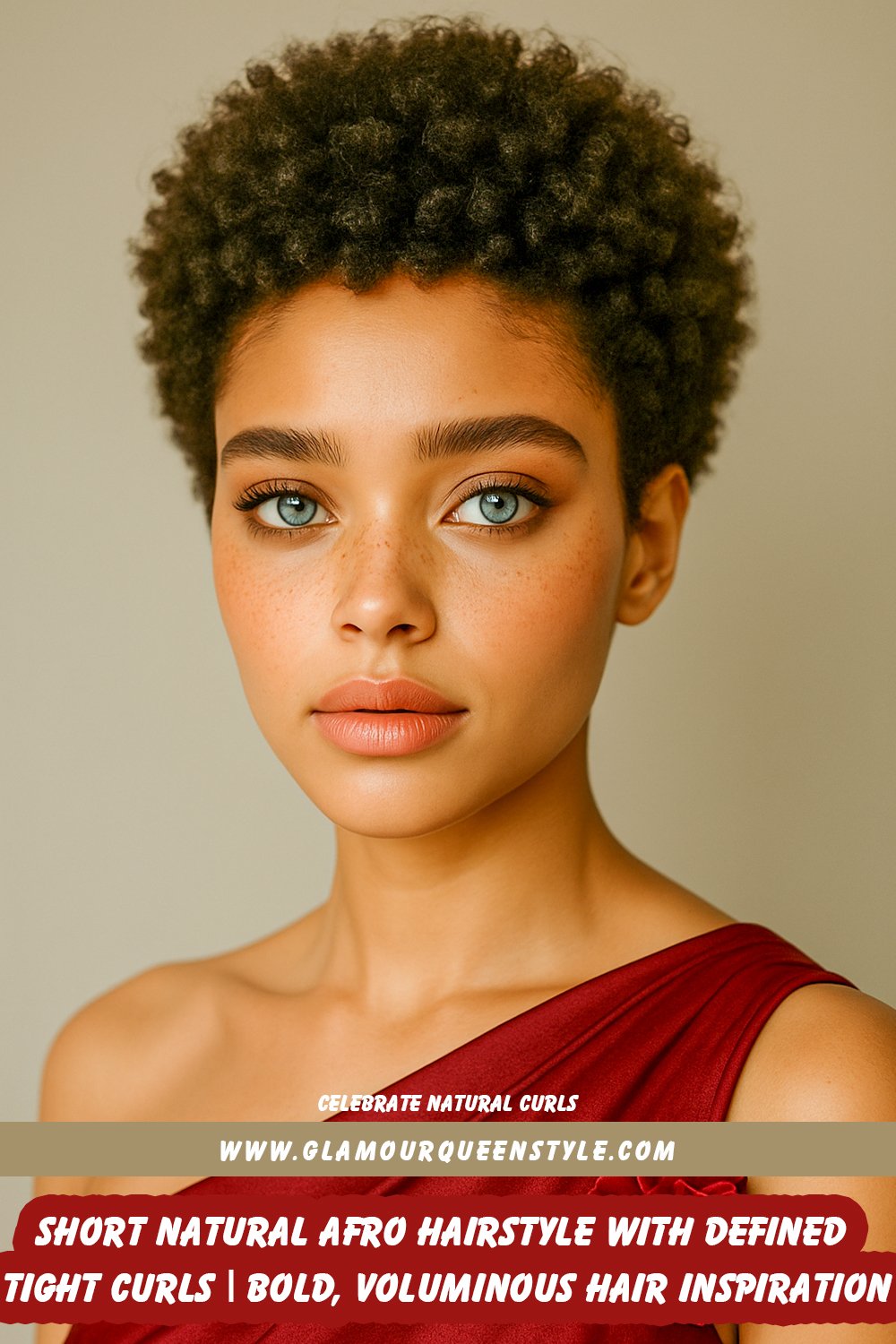 24. Short Natural Afro Hairstyle with Defined Tight Curls | Bold, Voluminous Hair Inspiration